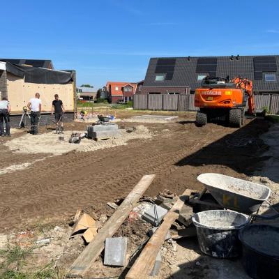 Gisteren hebben onze collega's de collega's van Aannemersbedrijf Kuipers B.V. uit Langeveen voortgeholpen met het grondwerk van deze 4 woningen in Den Ham.