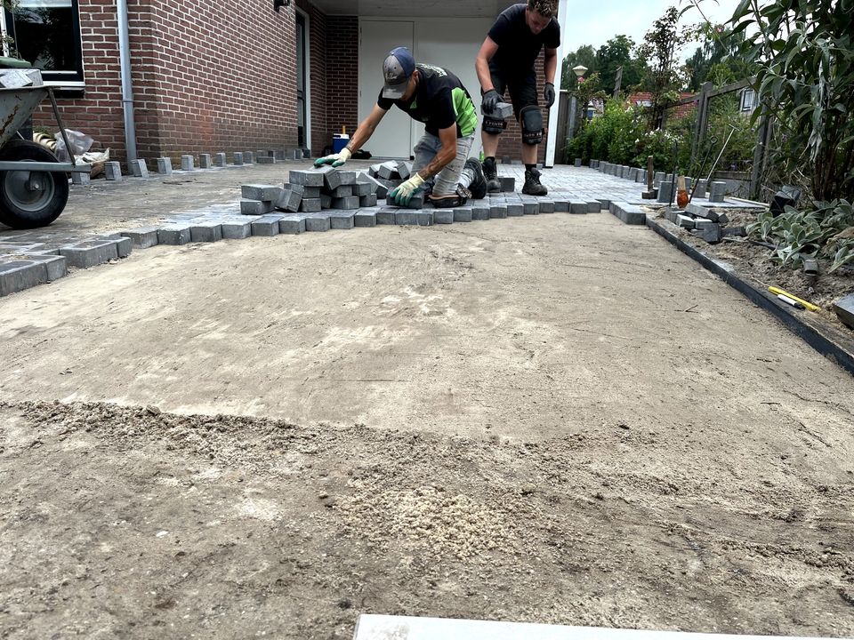 Vorige week hebben we in Vriezenveen het straatwerk van deze klus mogen afronden. Na de achtertuin en het pad opzij van de garage, was het tenslotte de beurt aan het oprit. Alles weer strak & netjes, zodat de nieuwe bewoners er met veel plezier en gemak kunnen wonen!