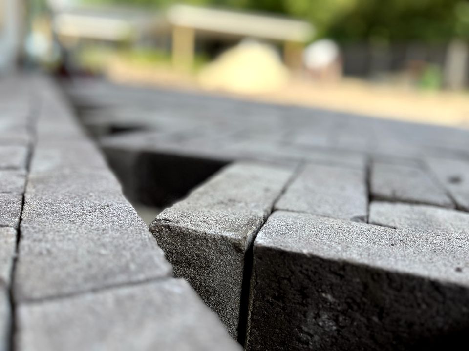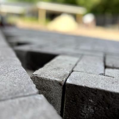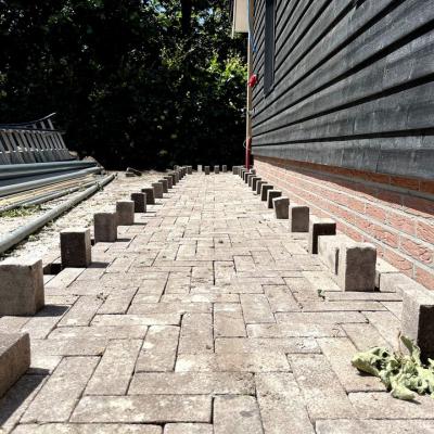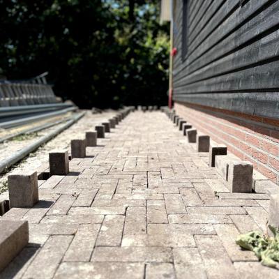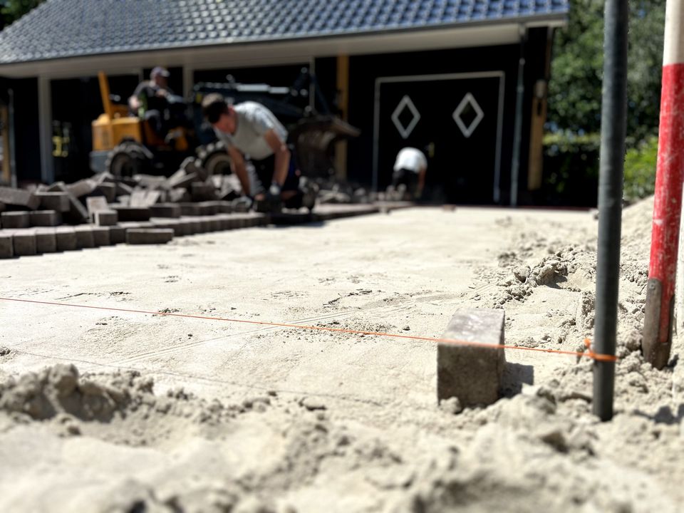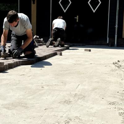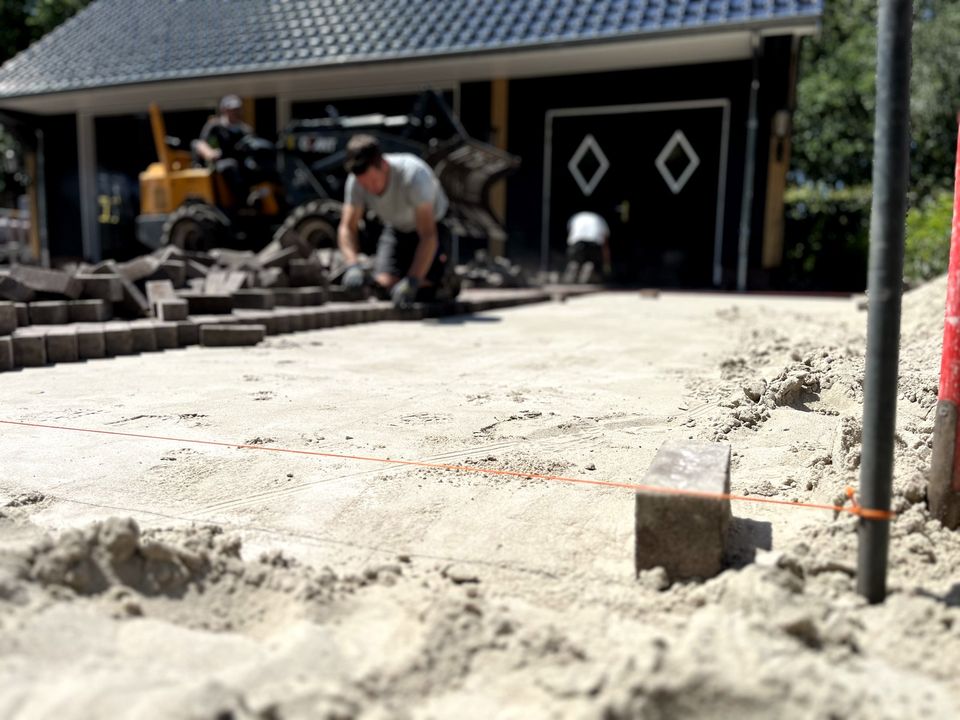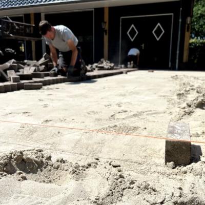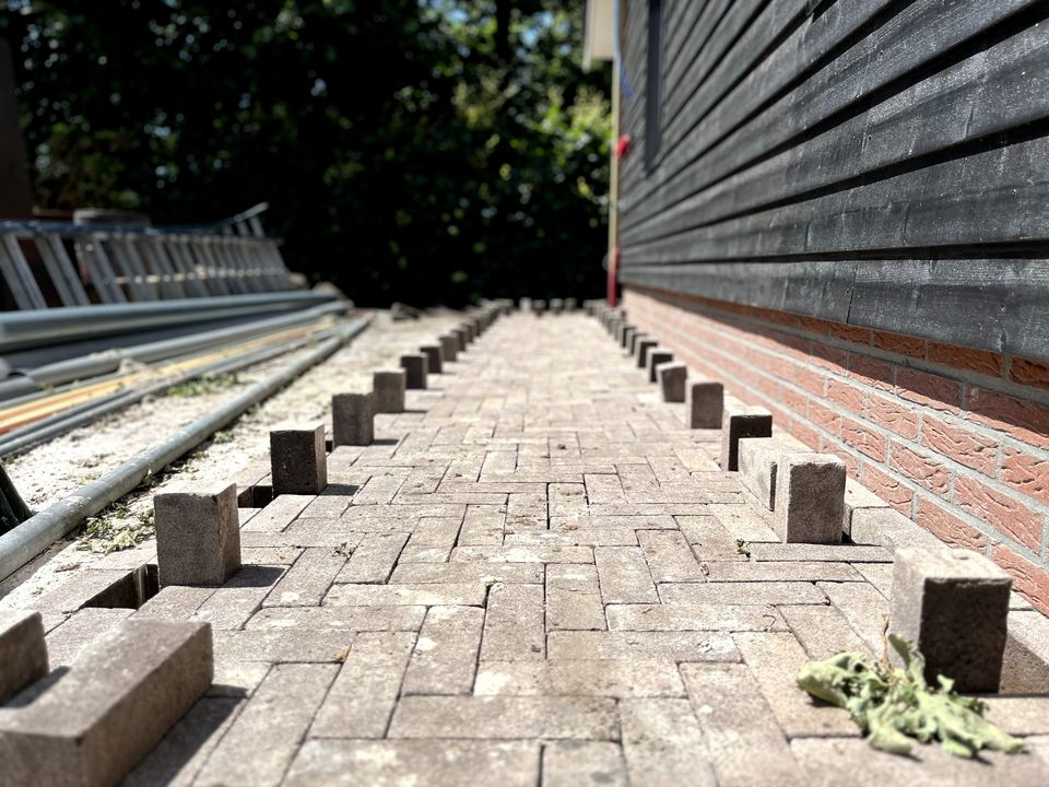 Na de aanleg van de beregeningsinstallatie en (een deel van) de beplanting, was het tijd voor de bestrating van deze tuin. Onze collega's maakten heel wat meters in de brandende zon, maar het resultaat mag er dan ook zijn!