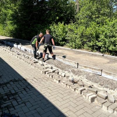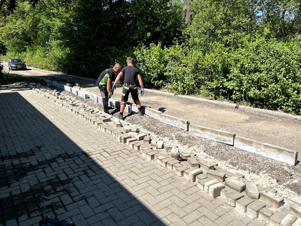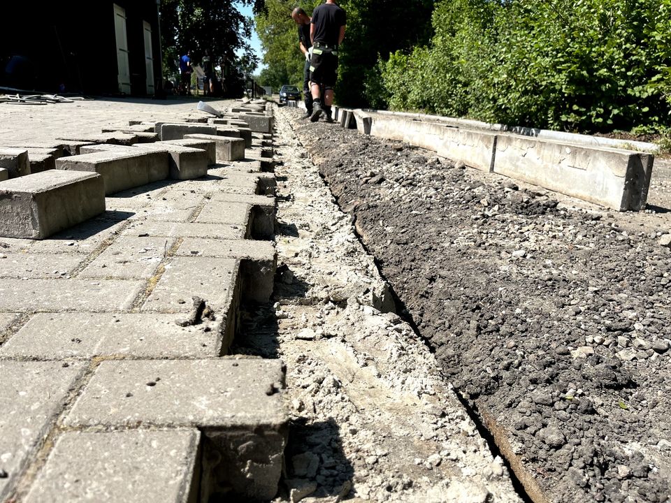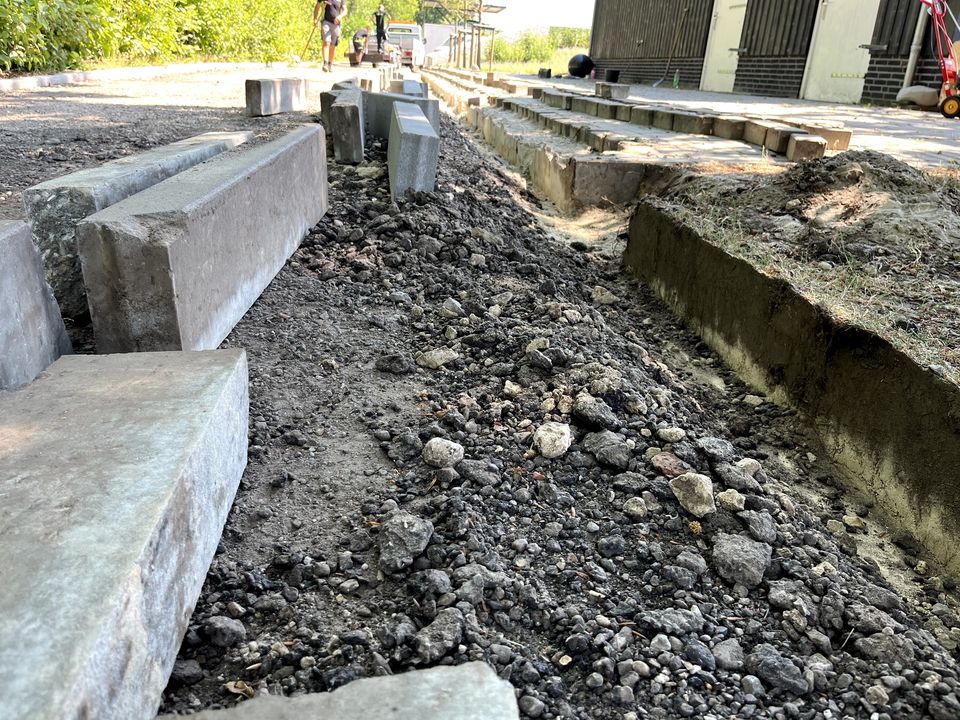 Onder tropsiche omstandigheden zijn we aan de rand van Almelo vandaag begonnen met het vervangen van (opsluit)banden voor het straatwerk. Deze banden waren beschadigd geraakt en voordat het asfalt van de nieuwe toegangsweg erin komt, wordt dit netjes in orde gemaakt. Binnenkort dus weer een nette toegangsweg 👌