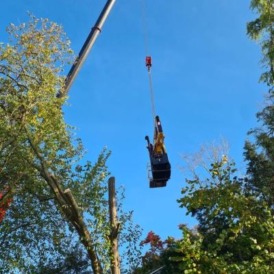 Deze week hebben we bij Preston Palace verschillende bomen weggezaagd. Enkelen waren al dood of in slechte staat. Met behulp van een telekraan van de firma Looms uit Almelo en een hoogwerker van Gebo uit Tubbergen is dit alles tot een goed einde gebracht; beide dank voor de medewerking! Preston Palace wederom bedankt voor de opdracht & het vertrouwen.