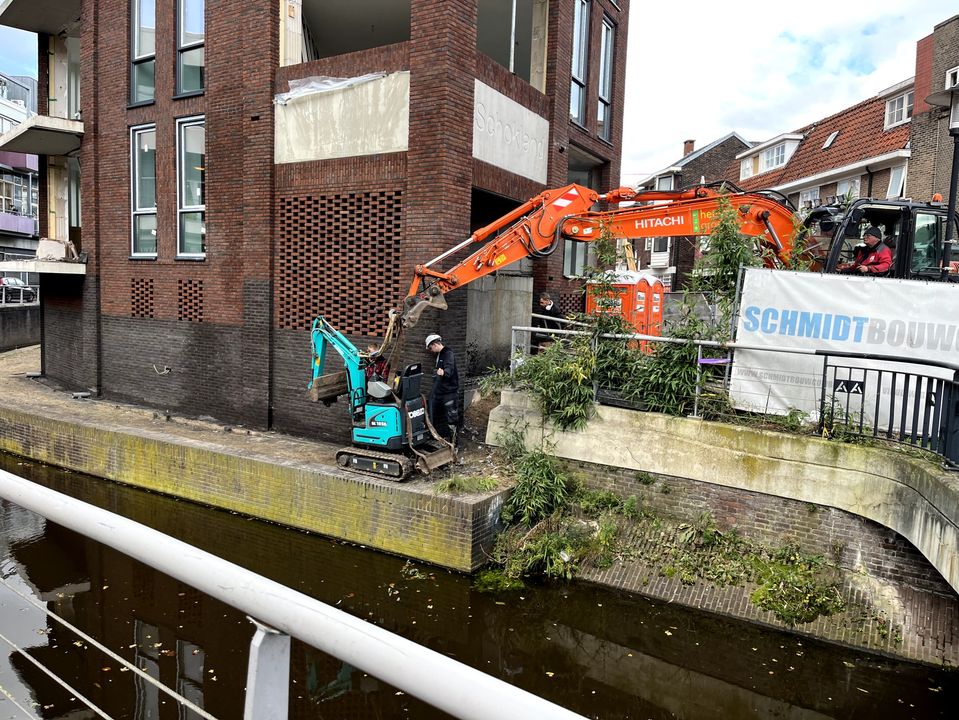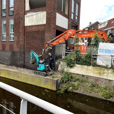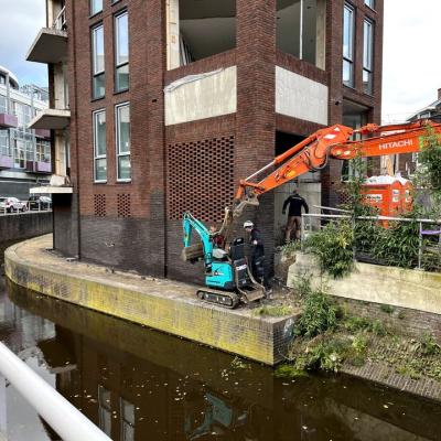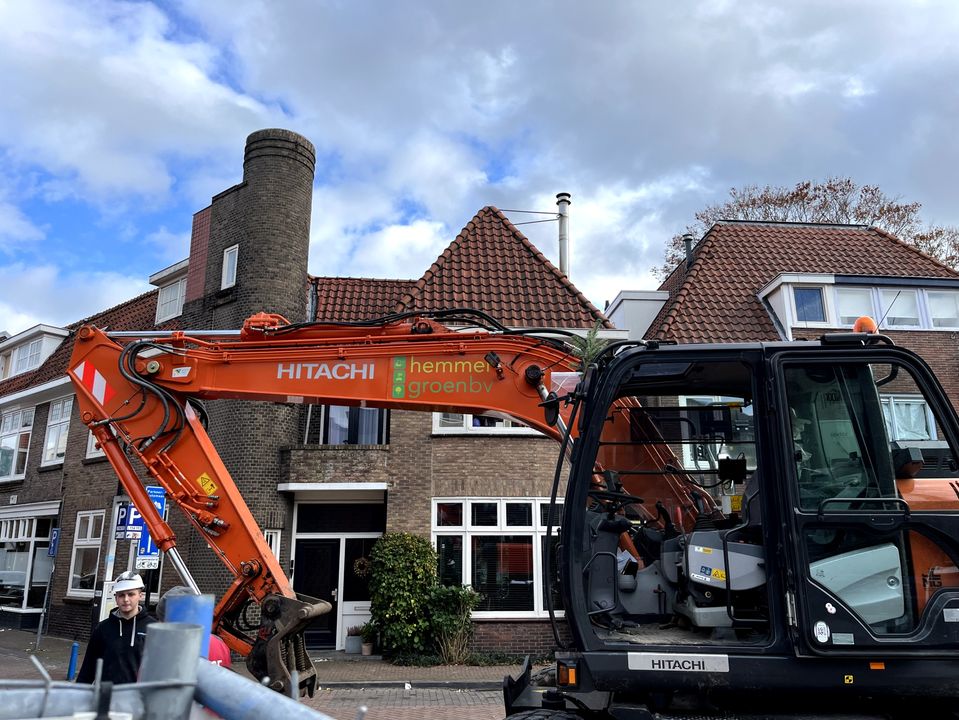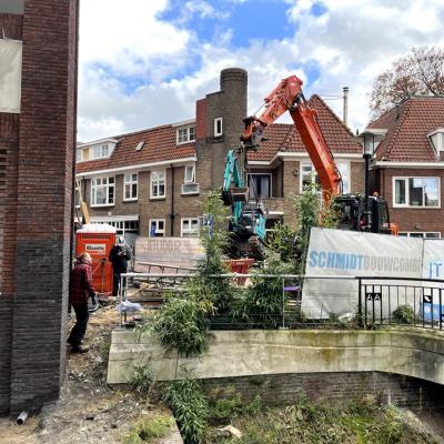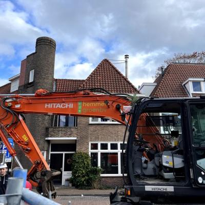 Vanwege de ietwat lastig bereikbare locatie, moesten we de kleine kraan met onze grote kraan op de juiste plek tillen. Spectaculair gezicht! Gelukkig draaien onze nauwkeurige en zeer ervaren machinisten hiervoor de hand niet om en is de operatie binnen zeer korte tijd afgerond. Binnenkort volgen de resultaten van de (tuin-)werkzaamheden.