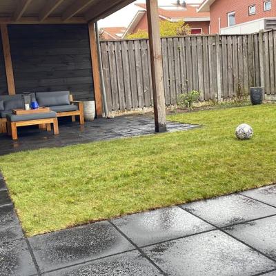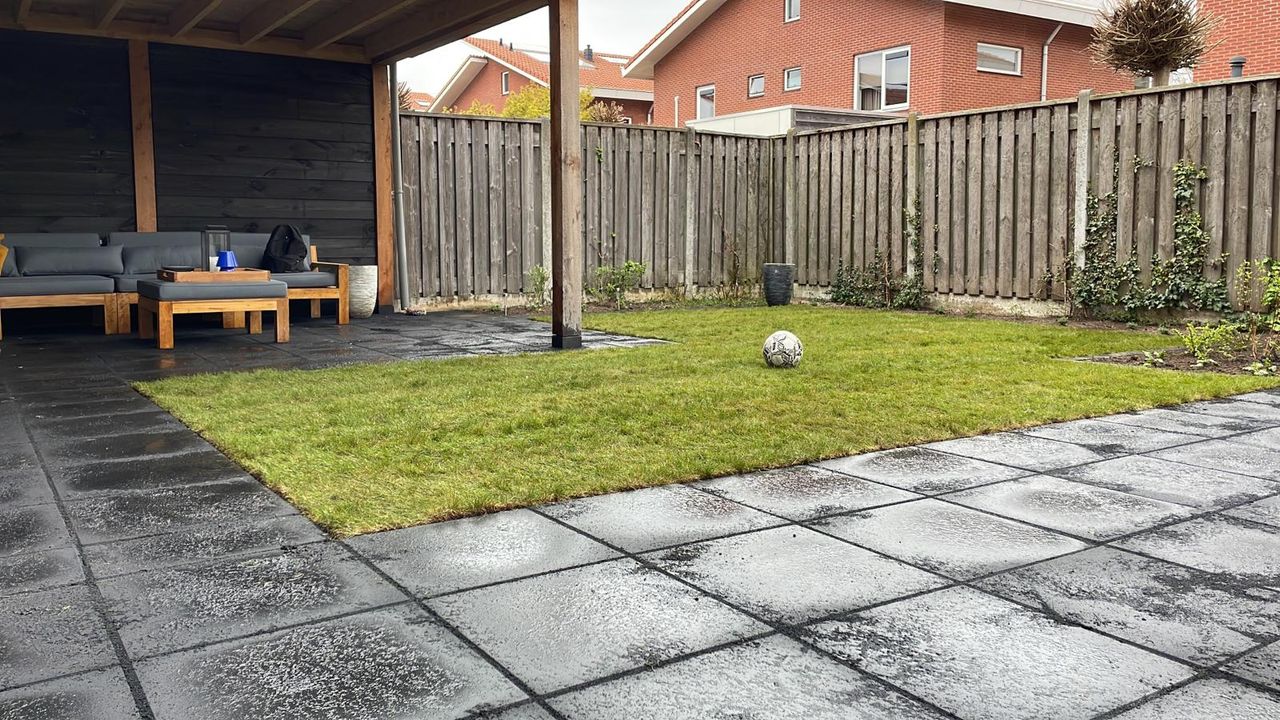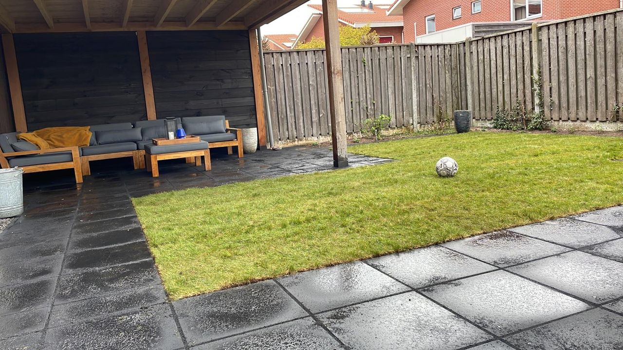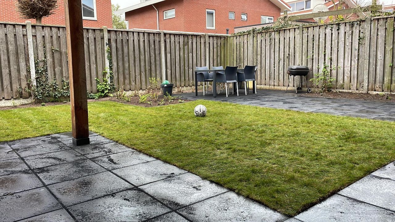 De werkzaamheden zijn mooi op tijd afgerond, zodat de bewoners nu ook in eigen tuin van het lekkere weer kunnen genieten; Wij wensen ze uiteraard veel plezier toe!