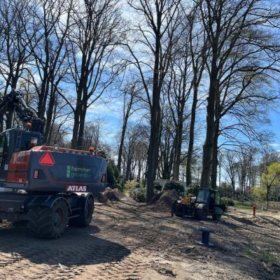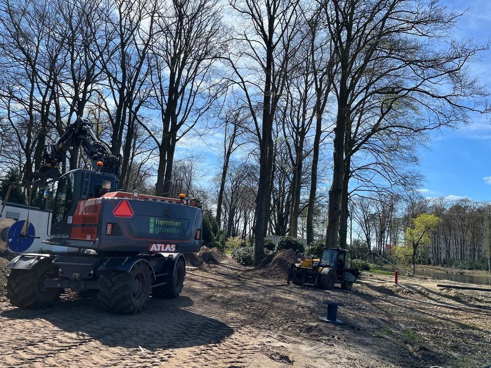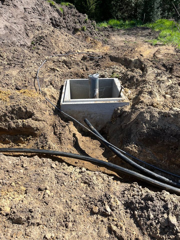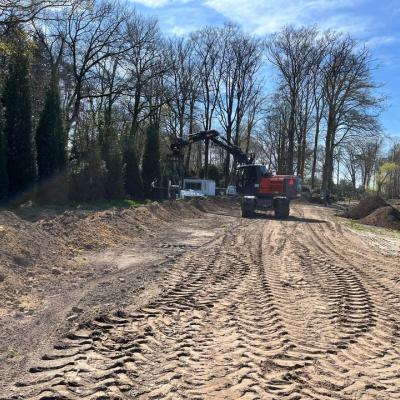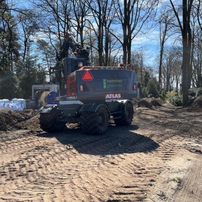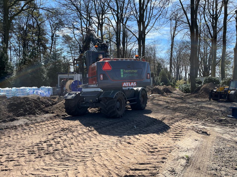 Zo hebben we aan de rand van Enschede met behulp van onze mobiele kraan behoorlijk wat meters gemaakt bij de aanleg van een tweetal putten en vele meters leiding voor de beregening en het op peil houden van de aangelegde (zwem)vijver.