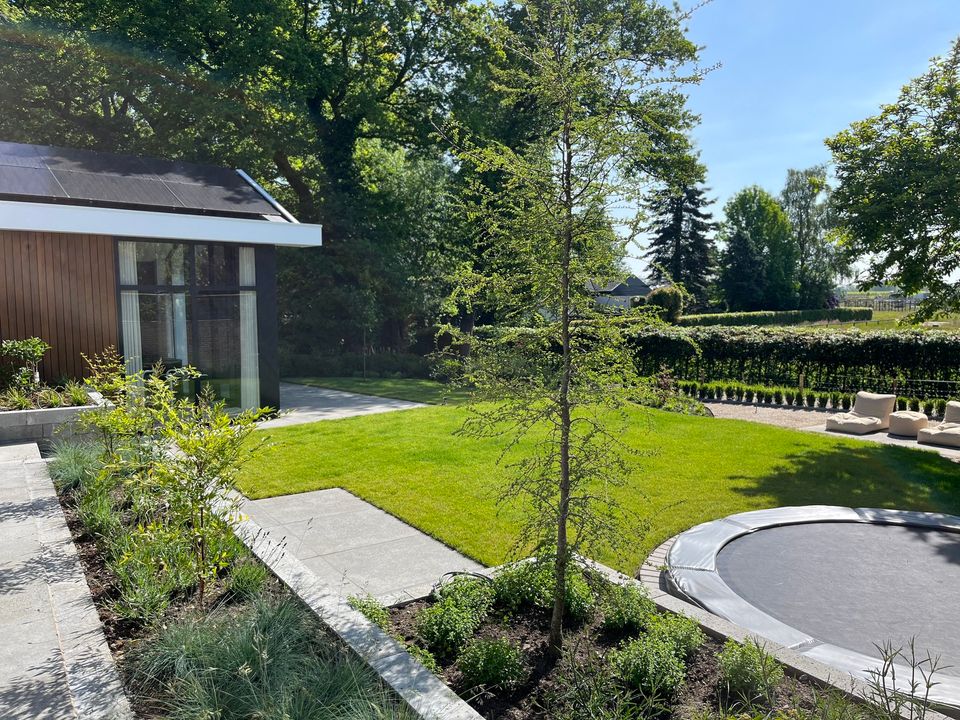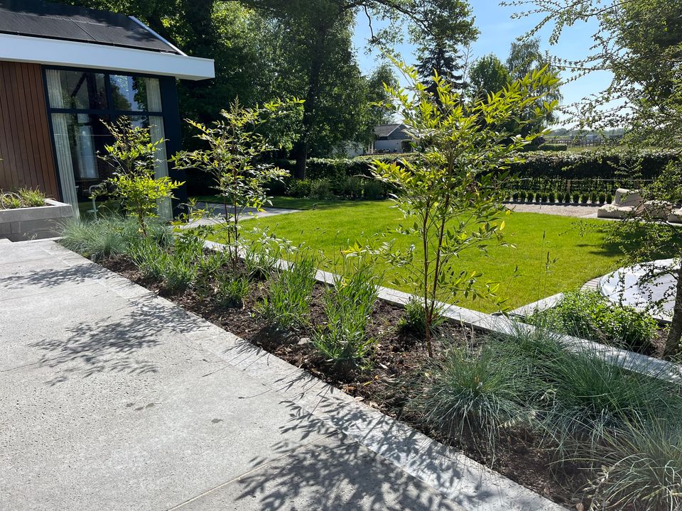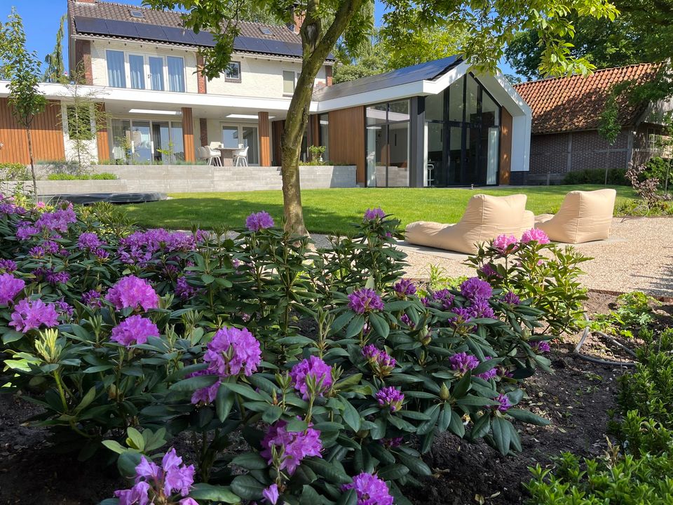 Wat een prachtige dag voor mooie plaatjes! En het geval wilde dat we nog geen foto's hadden van de prachtige tuin in Geesteren waar we een paar weken terug zo druk mee zijn geweest. En eerlijk is eerlijk: Het (eind)resultaat mag er zijn!