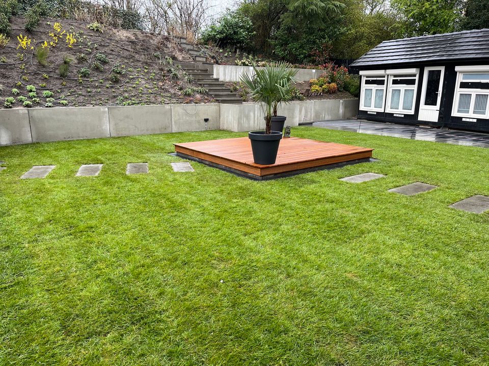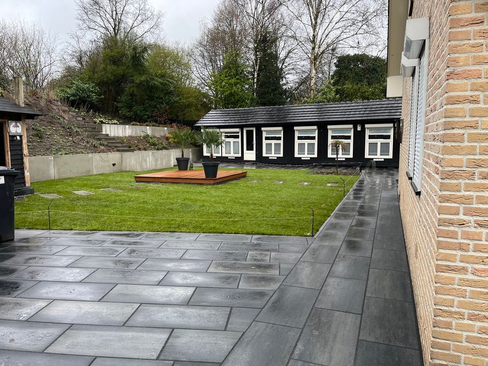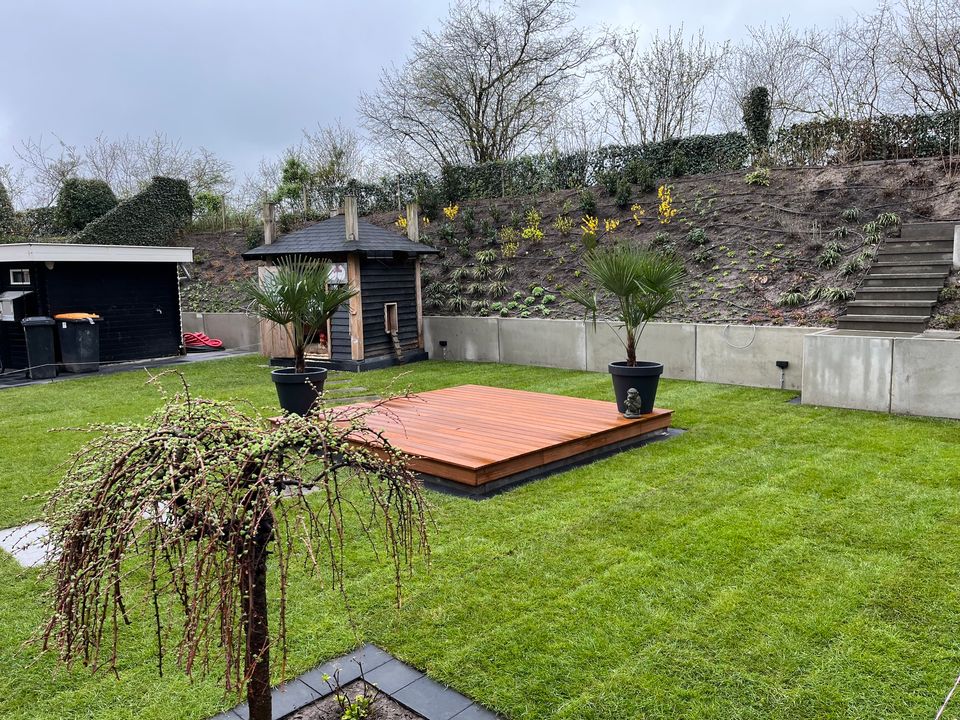 U heeft de afgelopen weken al kunnen volgen hoe het van een grote zwarte zandbak weer een fraaie en comfortabele tuin is geworden. Uiteraard danken wij onze opdrachtgevers en wensen wij ze veel plezier en genot van deze prachtige oase!